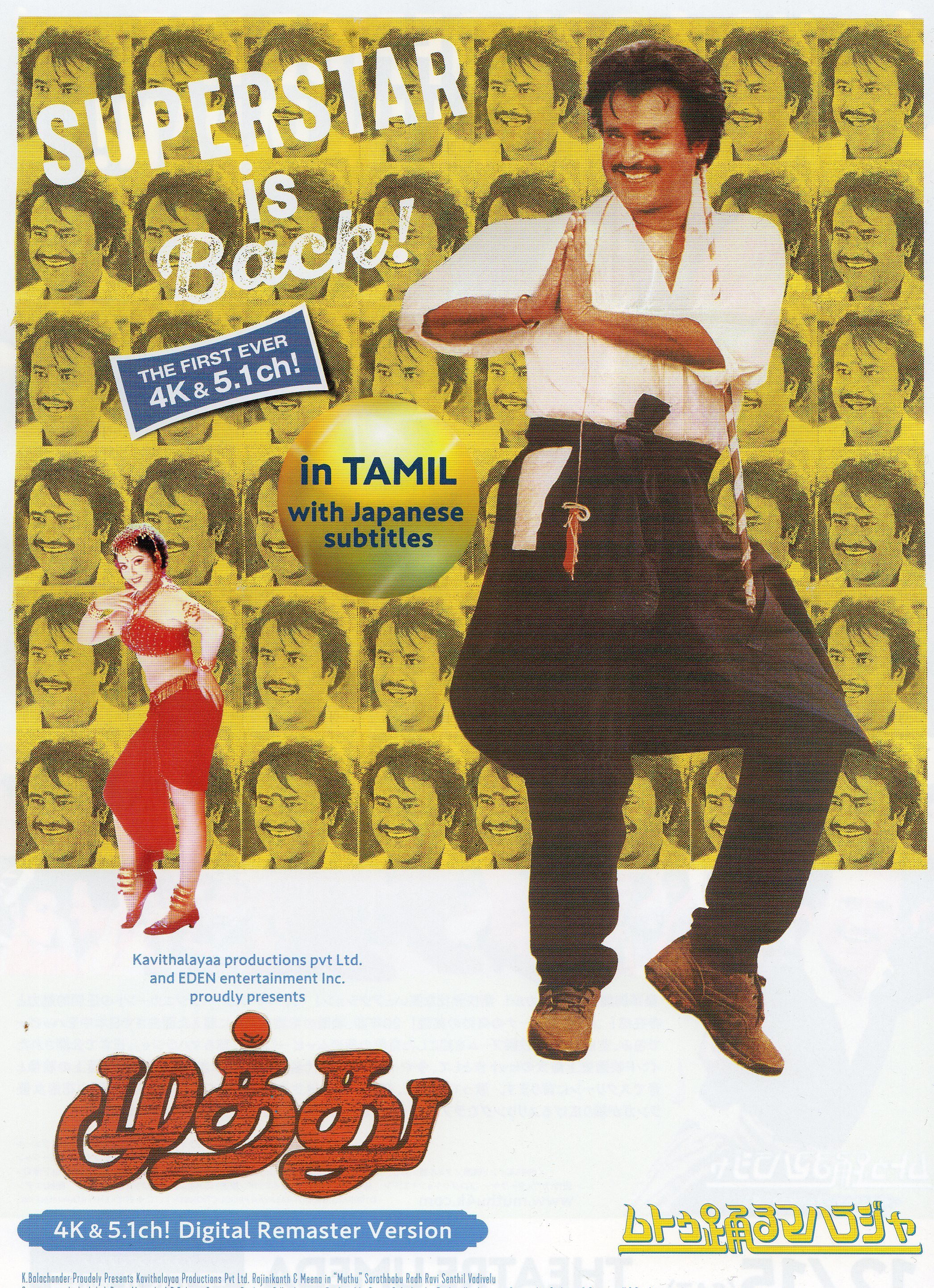 是非お近くの方にはご鑑賞頂き、デジタルリマスター・4Kバージョンの美しい【ムトゥ】で、ラジニ様の誕生日をお祝いしてください。